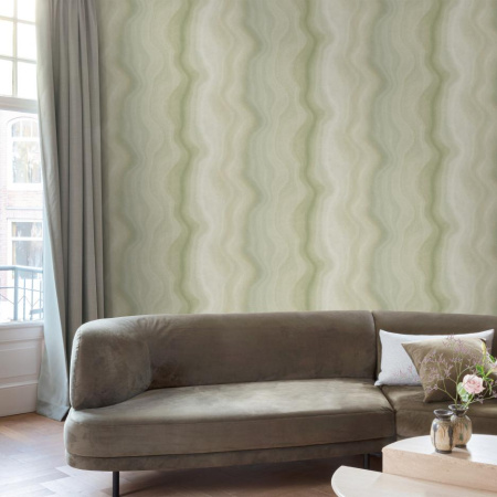 Центральное место в коллекции занимает мотив Soft Wave. Его плавные линии, словно созданные ветром на песке, придают интерьеру динамику и ощущение живого пространства. Ритмичные изгибы создают иллюзию лёгкого течения, будто комната дышит вместе с вами. Мягкая палитра, включающая розовые, зелёные и бежевые оттенки, делает этот мотив универсальным. Он может быть как деликатным и нежным, так и выразительным и современным, в зависимости от выбранного цвета. Этот узор идеально подходит для создания акцентной стены в гостиной, спальне или прихожей, добавляя интерьеру спокойствия и гармонии.